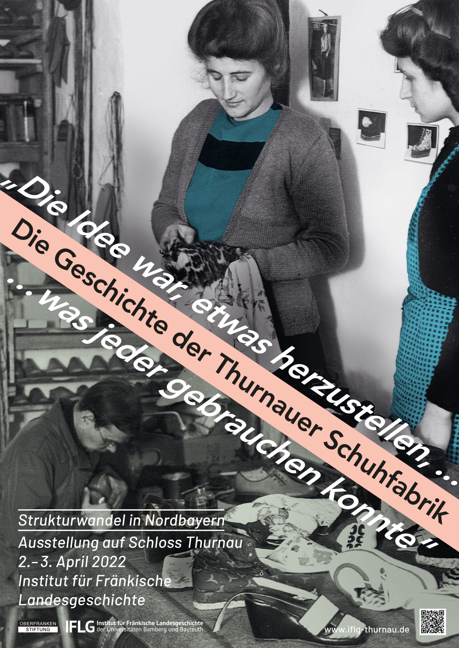 Im Jahr 1945 gründeten die Kriegswitwen Elisabeth Becker und Lieselotte Küper eine kleine Schuhfabrik in Thurnau mit dem Ziel, „etwas herzustellen, was jeder in dieser Zeit gebrauchen konnte“. Auch wenn die Fabrik seit mehreren Jahrzehnten nicht mehr existent ist, so ist die Erinnerung an diesen Teil der Thurnauer Industriegeschichte im Bewusstsein zahlreicher Menschen, deren Arbeits- und Lebenswelten mit der Fabrik verbunden war, noch immer präsent. Was verbinden diese Menschen heute mit dem Unternehmen und wie ist die Erinnerung an die Fabrik heute noch greifbar in Thurnau? Mit der kleinen Pop-Up-Ausstellung im Institut für Fränkische Landesgeschichte (IFLG) möchten Mitarbeiter des IFLG zusammen mit Studierenden der Universität Bayreuth eine Antwort auf diese Fragen geben. Die Geschichte der Thurnauer Schuhfabrik wird dabei sowohl im Kontext der deutschen bzw. fränkischen Schuhindustrie im 19. und 20. Jahrhundert sowie im Vergleich mit heutigen Umwelt- und Produktionsstandards in den weltweit führenden Schuh-Produktionsländern betrachtet.
